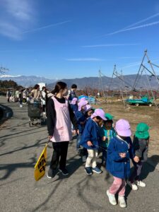 ぽかぽかお日さまの暖かさを感じながら、保育園のお友だち全員でお散歩に出かけました!