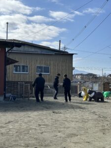 訓練後お遊戯室でおまわりさん達に