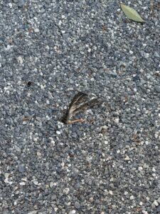 これは鳥の残骸…😭よくみると骨もついています。