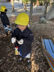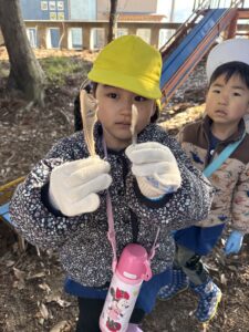 軍手をはめてみんなのいい目で羽を探しています!