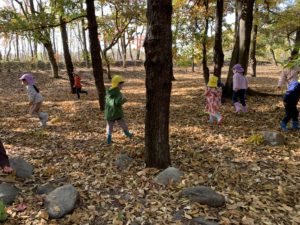 森へ着くとまずドングリや松ぼっくりを拾いました✨