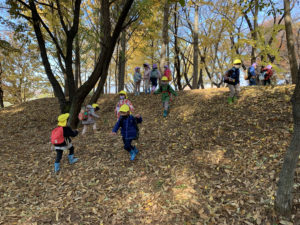 拾った後は落ち葉の坂を『せーの!』と言って駆け降り楽しんでいました⭐️