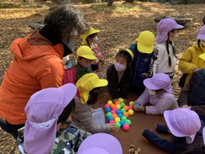 森の中に隠したカラフルボールを探したり…🏐