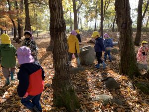 森へ着くとまずドングリや松ぼっくりを拾いました✨