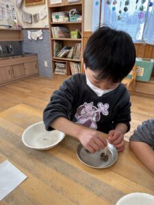 先日の節分に向け張子お面に挑戦!
