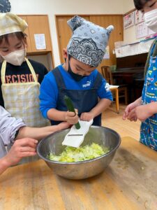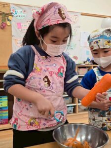 人参ドレッシングもみんなでシャカシャカ手作りして、野菜と混ぜて仕上げます🥗