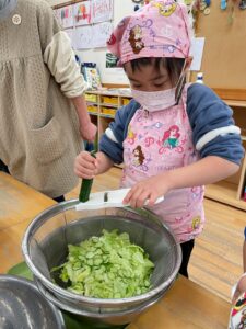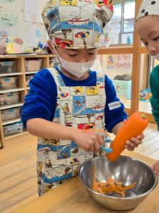 人参ドレッシングもみんなでシャカシャカ手作りして、野菜と混ぜて仕上げます🥗