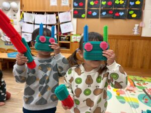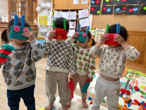 ブロックでお面を作った様子です👹♡
