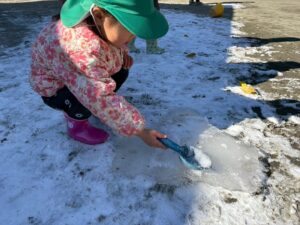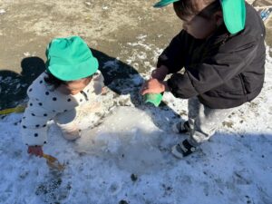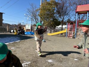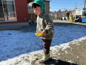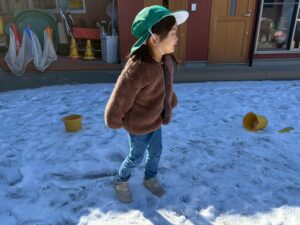 先日、園庭にうっすら雪が積もっていました!