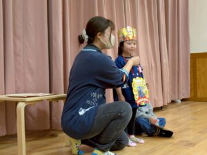 先生がお誕生日のお友達にまつわるクイズを出すと、たくさんのお友達が手を挙げて答えてくれました!
