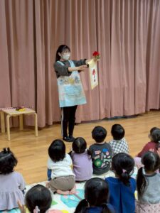 プレゼントのカードをもらい、担任の先生がお誕生日のお友達の紹介をしてくれました!