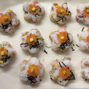 ちらし寿司は花の形🌸たくさん揃うとまた可愛い💕