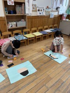 自分で顔の形を決めて切って貼り付けて