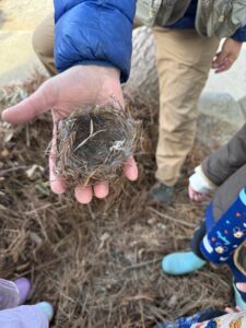 鳥の巣です!よくみてみると、檜の木で巣が作られていたので神社内で作られていたことがわかりました!