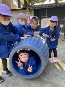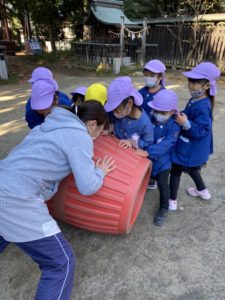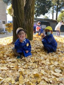昨日のお遊戯会で頑張った分、今日は神社でお参りをした後に思いきり遊びました‼️