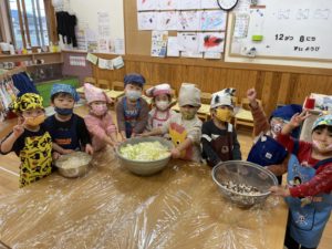 皆で机を囲んで楽しくクッキングすることができました!😆