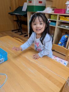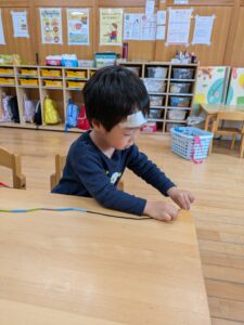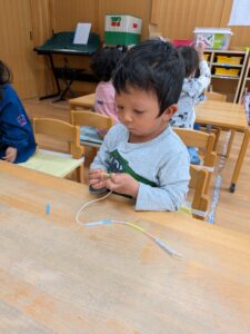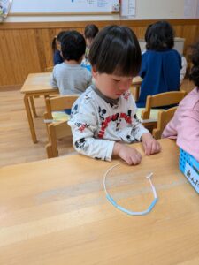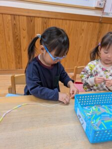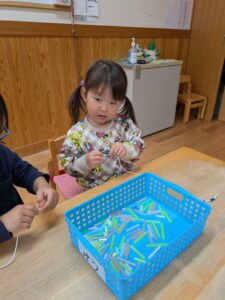 みんなでストローを使った紐通し!!