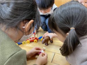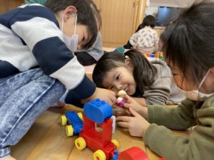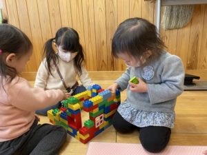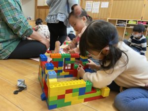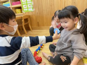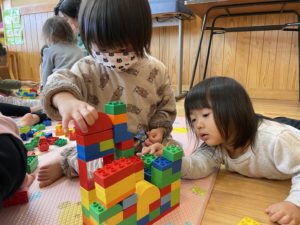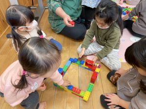 こちらはお友達と一緒にブロックを組み立てています✨