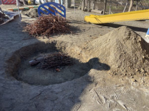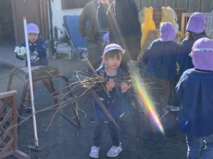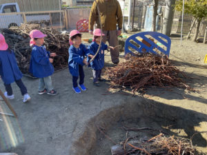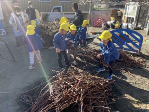 この間、神社で拾ったたくさんの木の枝をみんなで置いていきました。