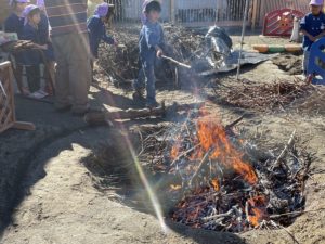 13時頃、みんなで巻き巻きしたお芋を火に入れ🔥