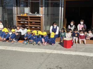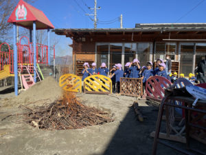 火がだんだん🔥🔥大きくなるのをみんなで見学したり、ことりさんが2度めの枝いれをしてくれました!