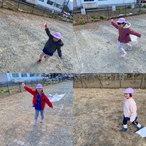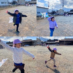 みんなとても楽しみだったようで駐車場に着くと「はやく凧揚げしたい〜!」と大はしゃぎ😳