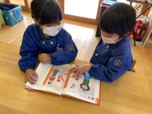 節分についての絵本を読み、行事についてみんなで調べると、、