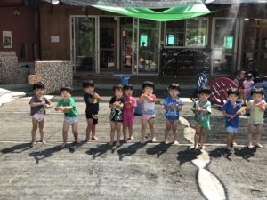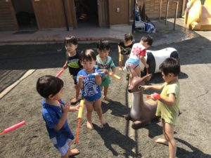 ひとりで水を入れてみんな上手に水鉄砲を楽しんでいました!(小林)