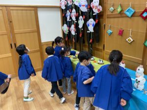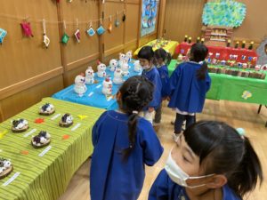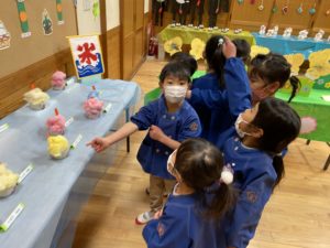 年下のお友達のかわいい作品たちに興味津々な子どもたち😳