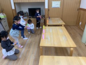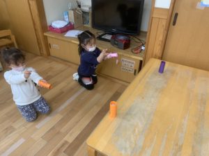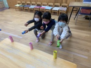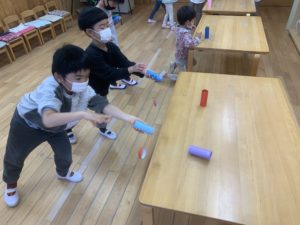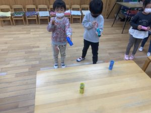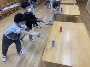 お友達と『せーの!』と声を合わせて的当てを楽しんでいました🎶