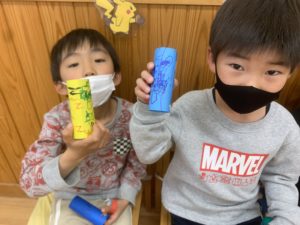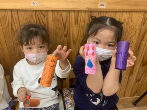 おばけの顔はペンを使い自分達で描きました!