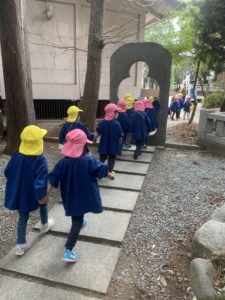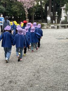 神社に咲いた満開の桜も見ることができ、子ども達はとても嬉しそうでした。