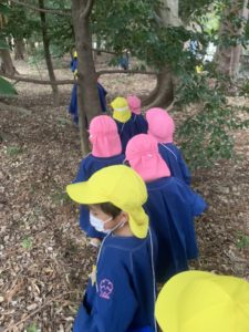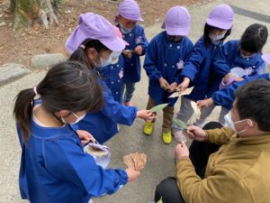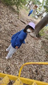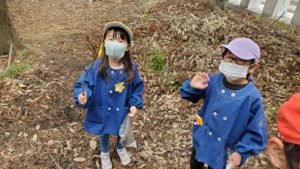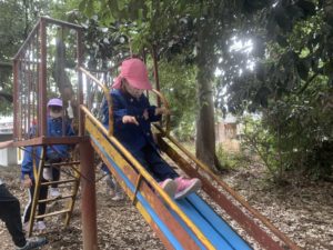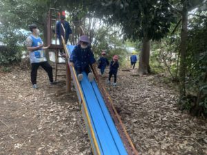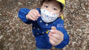 天気は曇りで少し肌寒く感じましたが、葉っぱやドングリ、マツボックリを拾ったり、おいかけっこやすべり台をしてたくさん遊びました。