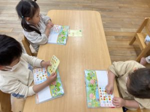 うさぎ組1・2歳児さんたちは、朝のおやつの後、自分たちで出席シールを貼っています📍