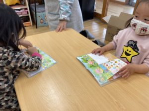 シールはみんなで分け合いっこ、一枚取ったらお友達にはいどうぞ😊