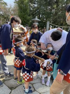 はっぴに着替え神社へ行くと、お父さんやお母さんがお出迎えしてくれました✨