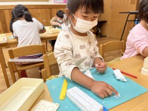 粘土べらを上手に使ってトントン模様をつけてみたり♪