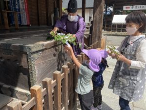 今日はことり、ほし、もも組さんで初めてのおついたちまいり⛩