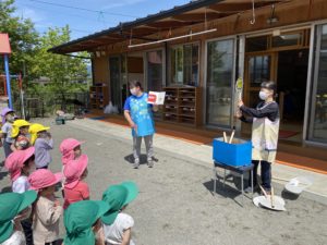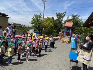 朝のお集まりでは先生たちがおべんとうバスの絵本の読み聞かせを行いました📕👀