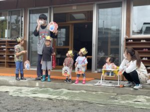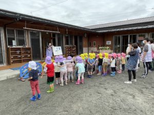 5月27日 朝は大雨☔️でしたが、お誕生日会をお祝いしてくれるかのように雨が止み、5月生まれのお友達のお誕生日会をしました🎏