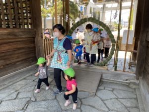 7/1 今日は全クラスで茅の輪くぐりに行ってきました⛩