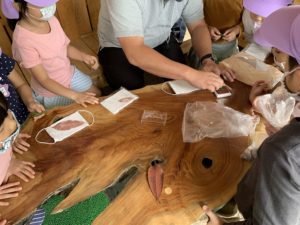 そして、ことり組は葉っぱにインクを付け、葉っぱ柄のマスクを作りました!