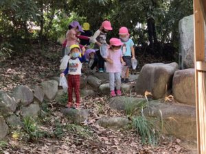 今日はもも組、ほし組、ことり組の3クラスで神社にお散歩に行きました!