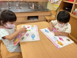 お外は雨が降ったり止んだり☔️という事で、今日はお部屋であそびワークに取り組みました✏️