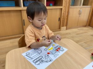 今日はうさぎ組の1歳児さんでシール貼りをして遊びました😌✨