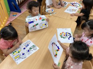 完成したものは「みてー!」とみんなで見せ合いっこ❗️
