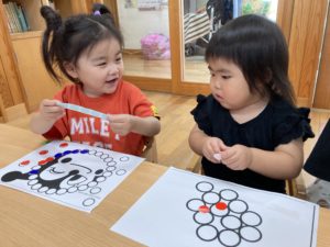 久しぶりのシール貼りでしたが子どもたちの喜ぶ顔が見られて良かったです😊🎶(稲田)