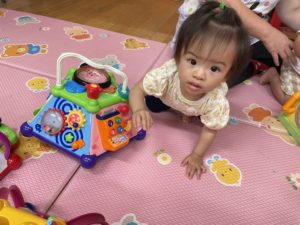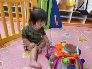 0歳児さんは音の出るおもちゃで遊びました。