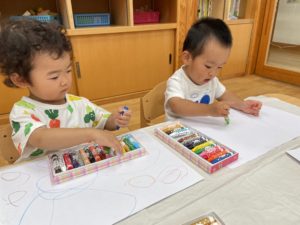 好きな色を持ち、自由にお絵描きを楽しんでいました!