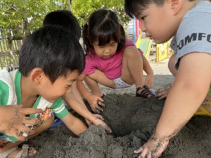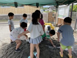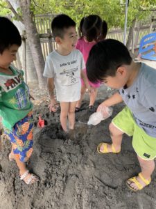 今日は朝天気が怪しかったですが、子どもたちの願いが届いたようで、無事に晴れて泥遊びが出来ました😆✨